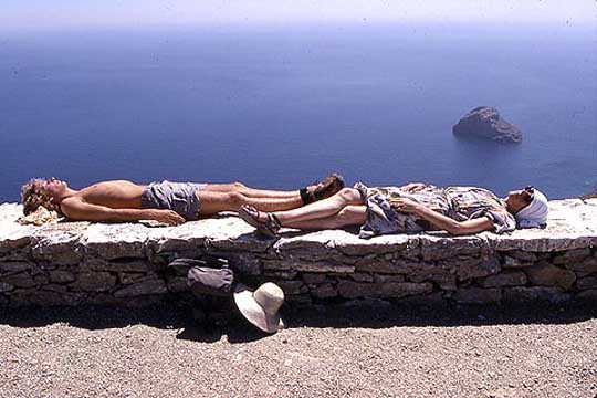When I returned from my excursion, I found Barbara surrounded by Angelika, her sister, and two other girls. They had spied her in a kafeneion in Naxos town... Cornelius and Jutta had gone to Santorini, and they all would meet at midnight in Paros. I persuaded a reluctant Barbara - "the girls don't need you!" - and we all sailed for Paros at nightfall... and surprised Cornelius and Jutta on the pier at midnight. He was less than enthusiastic to see his parents again - Barbara gave me one of her deploring looks. I didn't care, my time with Cornelius had been too good. We found a room and they went to sleep on some beach.